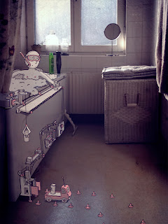 Os presento a Johan Thörnqvist, un ilustrador suizo que realiza sus cuentos a partir de fotografías. Realiza fotografías para posteriormente dibujar sobre ellas. No he encontrado información sobre él a parte de su página web: http://www.snarlik.se/